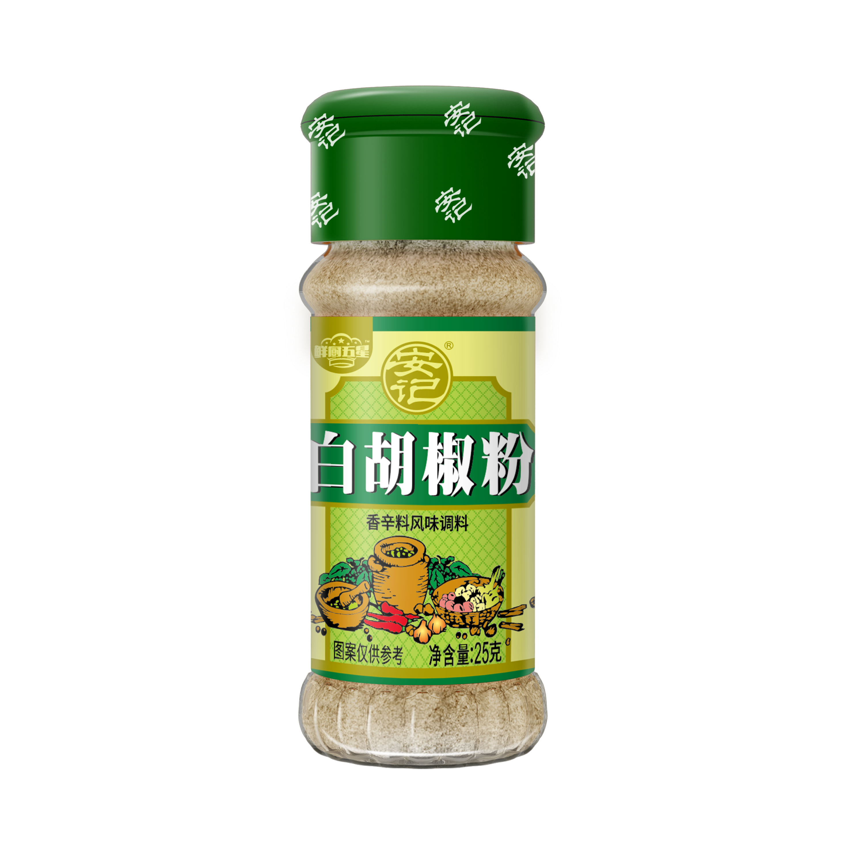 (玻瓶綠蓋)25g鮮廚五星白胡椒粉24瓶裝